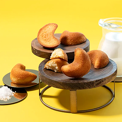 福岡・糸島のブランド牛乳「伊都物語」と、玄界灘の海の恵みである塩を使用し、素材の風味を引き立てる製法で丁寧に焼き上げました。外は香ばしく、中はしっとりとした上質な口どけ。