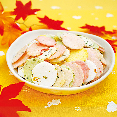 彩りや形の異なる煎餅を詰め合わせているため、見た目にも華やかで、お茶請けやおやつにはもちろん、ご家族やご友人との団らんの時間にもぴったりです。
