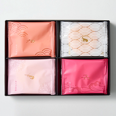 | 内容量 | 白えび煎餅・伊勢えび煎餅・甘えび煎餅・桜えび煎餅×各4枚 |