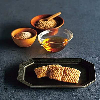 『海人の藻塩味』と、焼き上げた後に仕上げに掛ける油に“かどやのごま油”を使用した、えびとごま油の香ばしい香りが口いっぱいに広がる『かどやのごま油味』の2種類。