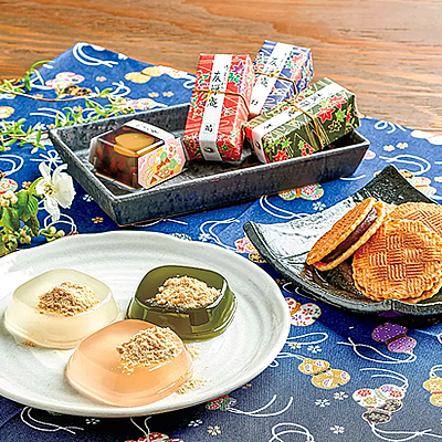 創業以来受け継がれる職人の技と、四季の恵みを生かした素材の風味が織りなす、河内駿河屋ならではの和菓子づくしです。